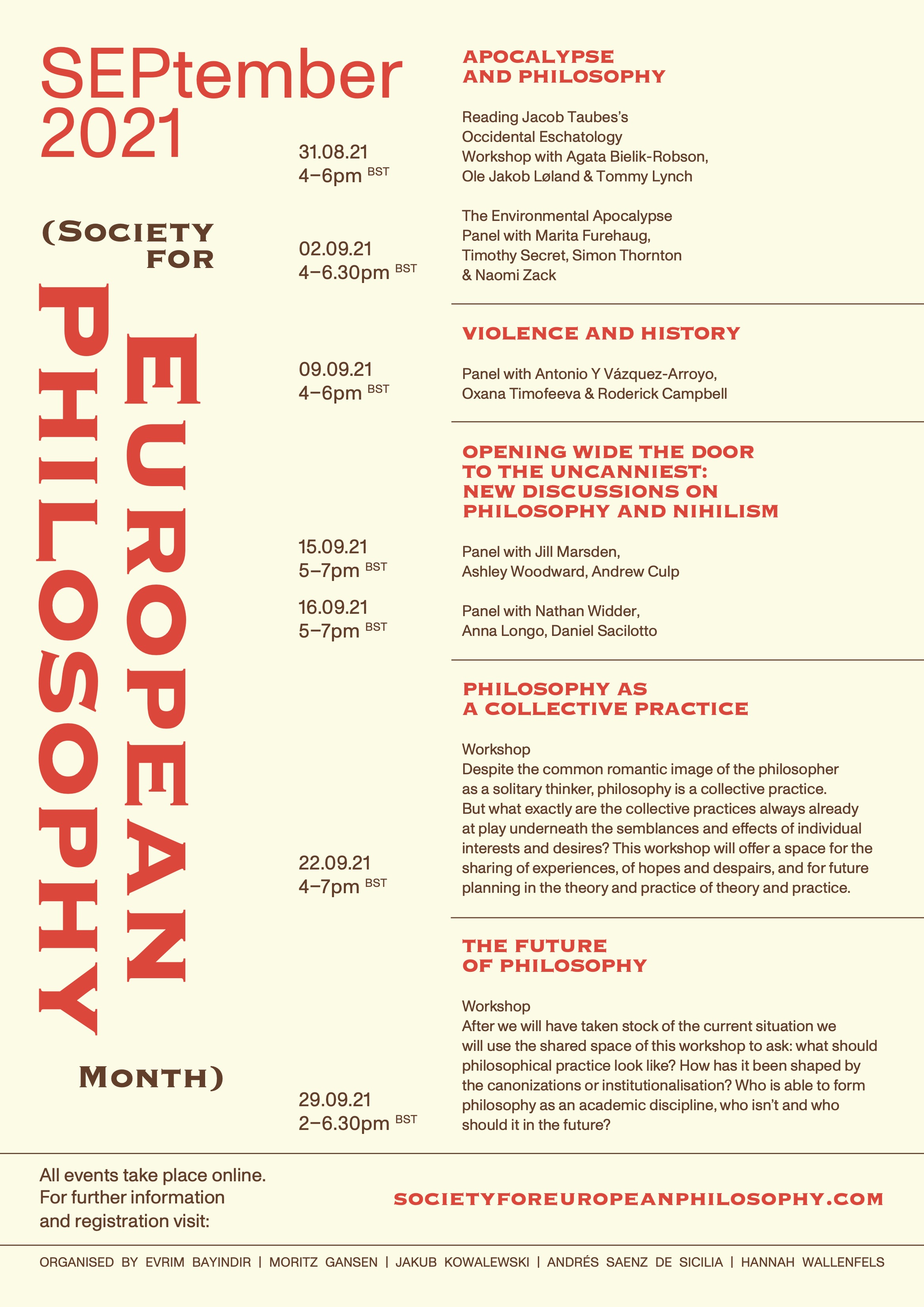 Since the 2021 annual conference of the Society for European Philosophy and the Forum for European Philosophy has been postponed to 2022, SEP has decided to dedicate September to a series of online events.